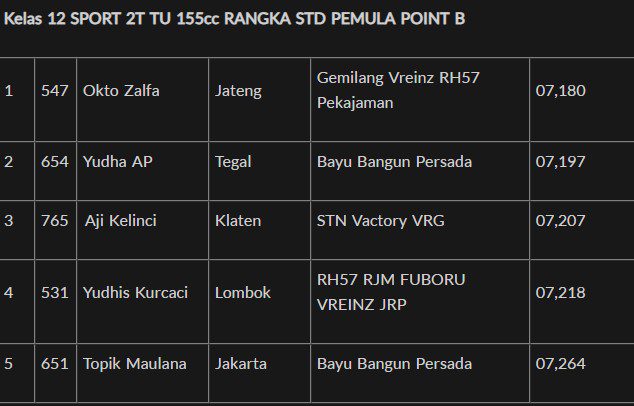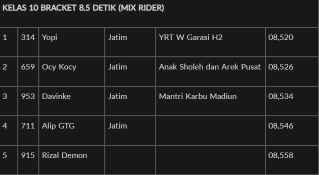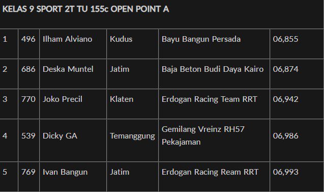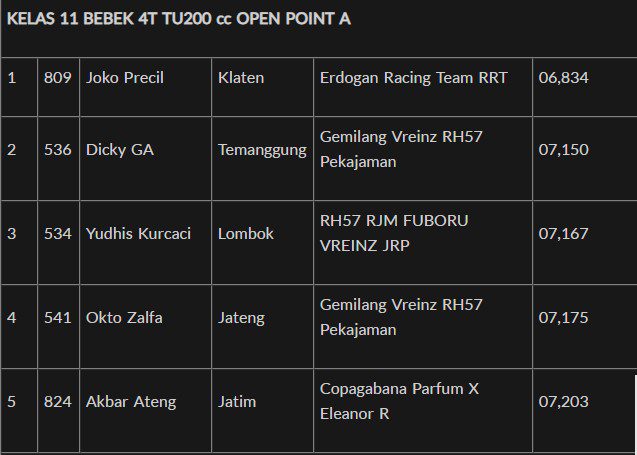 Balap Hasil Juara Black Dragbike 2023 5 Agustus Sidoarjo 6 Agustus 2023 Naila Athiyyah 2903 Views Laman: 1 2 3 4 5 6
